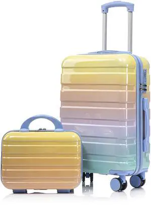 14"/20" 2 pcs/set in PC Spinner Wheel Luggage, Carry on Suitcase, With Gradient Color and Combination Lock(Blue+Yellow)