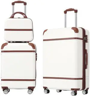 Hardshell Luggage Sets 3 Pieces 20"+24" Luggages and Cosmetic Case Spinner Suitcase with TSA Lock Lightweight,White