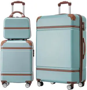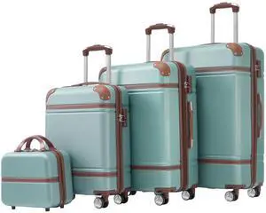 14"/20" 2 pcs/set in ABS Spinner Wheel Luggage, with Combination Lock,14" Cosmetic Case (Mint Green)