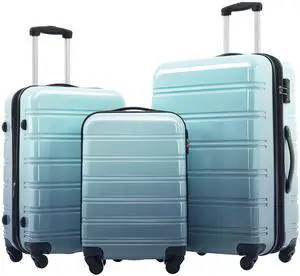 Hardshell Luggage Sets 3 Piece Gradient Color Expandable Suitcase with Spinner Wheels and TSA Lock Lightweight 20" 24" 28" Available,Gradient Blue