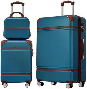 Hardshell Luggage Sets with Bags Lightweight Suitcase Double Spinner Wheels with TSA Lock ,Single Vintage Luggage 24 IN,Blue