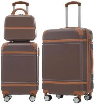 Hardshell Luggage Sets 3 Pieces 20"+24" Luggages and Cosmetic Case Spinner Suitcase with TSA Lock Lightweight,Brown