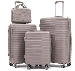 Luggage Sets New Model PC 5pcs, Hardside Lightweight Durable 20" 24" 28" Suitcases with 8" 14" Cases, Suitcase with Lock Spinner Wheels
