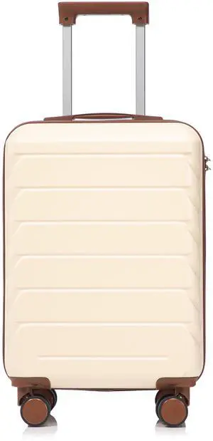 20 Inch ABS Hard Shell Travel Checked Luggage - Scratch Resistant Surface Four Multi-Directional Wheels, With Combination Lock.(Beige)