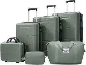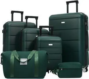 6 Piece Luggage Set,Lightweight Hardshell Suitcase with Double Spinner Wheels Handle Password Lock,14 IN Cosmetic Case 20/24/28 IN Luggages with Duffel Bag and Toiletry Bag