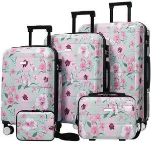 Luggage Set 5 Piece, Hardside Carry on Suitcase , Expandable Luggage with Travel Bags Spinner Wheels TSA Lock