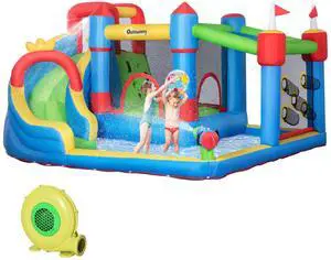 6-in-1 Inflatable Bounce House with Slide, Climbing Wall, Water Cannon, and More, Inflatable Water Slide for Kids with 2 Min. Inflation with Inflator