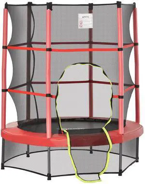 5FT Kids Trampoline with Enclosure Net, Springless Design, Safety Pad and Steel Frame for Indoor Outdoor, Toddler Round Bouncer for Age 3 to 6 Years RED