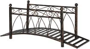 4 Metal Arch Backyard Garden Bridge with Safety Siderails, Delicate Scrollwork, & Easy Assembly, Black Bronze