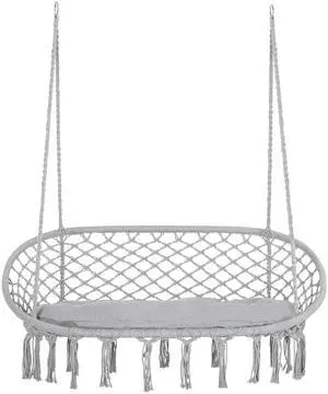 2-Person Hammock Chair Macrame Swing with Soft Cushion, Hanging Cotton Rope Chair for Indoor Outdoor Home Patio Backyard, Grey