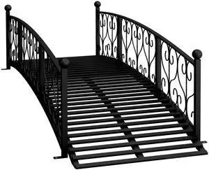 7' Metal Arch Garden Bridge with Safety Siderails, Decorative Arc Footbridge with Delicate Scrollwork "S" Motifs for Backyard Creek, Stream, Fish Pond, Black