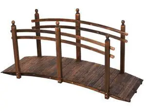 7.5' Fir Wood Garden Bridge Arc Walkway with Side Railings, Perfect for Backyards, Gardens, & Streams, Carbonized