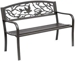 50" Garden Bench, Outdoor Patio Bench with Animal Pattern, Cast Steel Metal Bench for Yard, Lawn, Porch, Brown