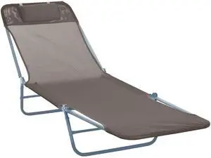 Folding Chaise Lounge Chair, Pool Sun Tanning Chair, Outdoor Lounge Chair with 5-Position Reclining Back, Breathable Mesh Seat, Headrest for Beach, Yard, Patio, Brown