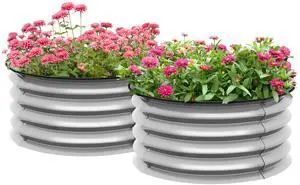 Galvanized Raised Garden Bed Set of 2, Planters for Outdoor Plants with Safety Edging, Easy-to-assemble Stock Tanks for Growing Flowers, Herbs and Vegetables, Silver