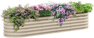 7.9' x 2' x 1.4' Galvanized Raised Garden Bed Kit, Outdoor Metal Elevated Planter Box with Safety Edging, Easy DIY Stock Tank for Growing Flowers, Herbs & Vegetables, Cream