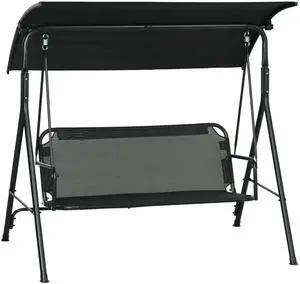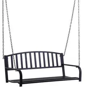 2 Person Front Porch Swing Patio Swing Bench, Outdoor Steel Swing Chair with Sturdy Chains, for Backyard, Deck, 528 lb Weight Capacity, Black