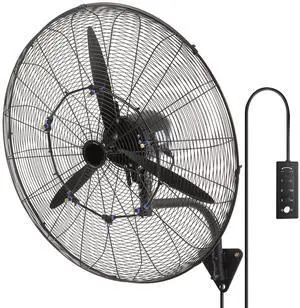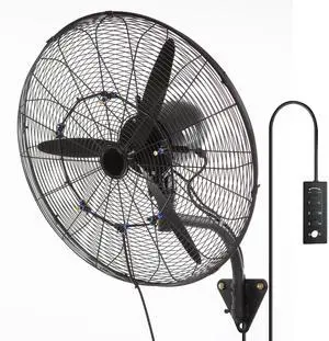 Wall-Mount Misting Fan, 24 Inch, 3-speed High Velocity Max. 7000 CFM, Waterproof Oscillating Industrial Wall Fan, Commercial or Residential for Warehouse, Greenhouse, Workshop, Black, ETL Listed