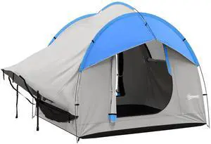 2 Person Foldable Camping Cot with Tent, Bedspread and Thick Air Mattress, 4-In-1 Elevated Camping Bed Tent for Outdoor Hiking, Picnic, Travel