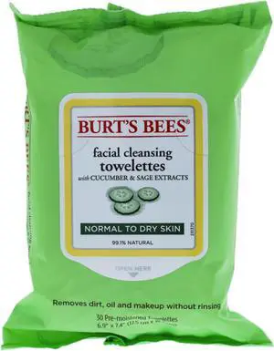 Facial Cleansing Towelettes - Cucumber & Sage by Burts Bees for Unisex - 30 Count Towelettes