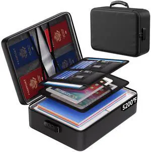 Fireproof Document File Organizer Bag, Black 5200°F Portable File Organizer Handbag With Lock,Hard Case Fireproof Waterproof Important Document Bag,Fire Safe Home Valuables Storage