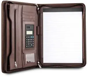 Premium Business Portfolio with Zipper Padfolio - Superior Business Impressions Begin with PU Vegan Leather, 10.1 Inch Tablet Sleeve, Smart Storage, Solar Calculator, Writing Pad -Brown