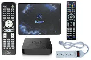 BuzzTV Essentials E1-2GB RAM 8GB Storage - Latest Graphics Processor - Dual Band WiFi with Bonus Buzz TV Remote + Bonus Power Bar
