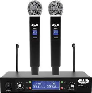 CAD Audio WX200 UHF Wireless Dual Handheld Mic System 2 Channels, 164 Range, Metal Receiver, XLR & ¼ Outputs, 10 Hr Battery