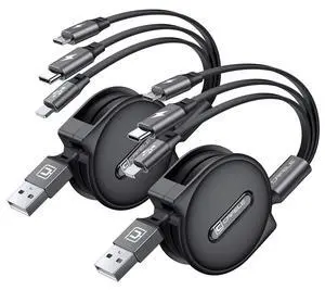 CAFELE 2025 Upgraded Multi Charging Cable 3A, [2Pack 4ft] Retractable Charging Cable with Type C/L/Micro USB Ports, 3 in 1 Fast Charger Cord for Multiple Devices, Phone 16 15 14/Galaxy/Pads/Tablets