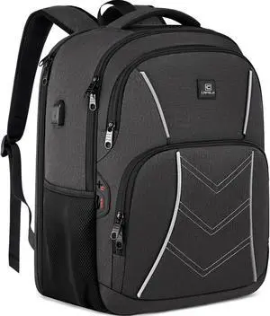 Backpack, Laptop Backpack, Carry on Backpack, Durable TSA Friendly Business Travel 17.3 Inch Laptop Backpack with USB Port, College School Bag Gift for Men Women Teens Bookbag, Black