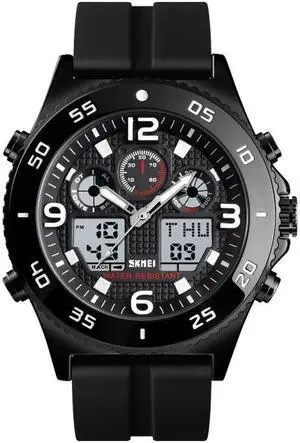 SKMEI 1538 Multi-Function Time Large Dial Steel Belt Men Casual Sports Electronic Watch (Black-Silicone Belt)