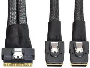 Chenyang SFF-8611 to SFF-8639 Cable,OCuLink PCIe PCI-Express SFF-8611 8X 8-Lane to 2 SFF-8639 U.2 4X SSD Data Active Cable 50cm