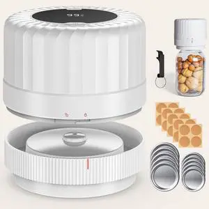 Electric Mason Jar Vacuum Sealer - Fully Automatic Mason Jar Vacuum Sealer Kit for All Mason Jars with Regular Lids and Wide Mouth Lids, A Must-Have Tool for Canned Foods/Pantry - White