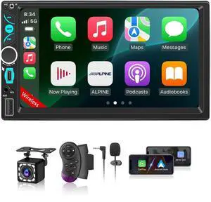 Wireless Double Din Car Stereo Apple Carplay Radio Screen for Car Audio Receivers, Bluetooth Car Play Android Auto 7" Touchscreen, Car Radio Support Bluetooth, SWC, Mirror Link, FM/AM, Type-C
