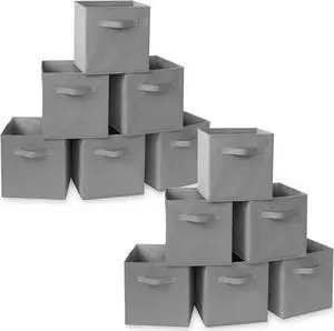 Casafield 12" x 12" Water Hyacinth Storage Baskets, Natural - Set of 6 Collapsible Cube Organizers, Woven Bins for Bathroom, Bedroom, Laundry, Pantry, Shelves