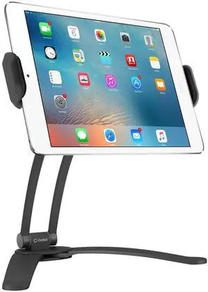 Cellet Kitchen Tablet Mount Stand 2-in-1 Wall, Table, Counter Top, Desktop Mount Recipe Holder Stand for iPad/Pro/Air/Mini, Micro Surface Pro,Galaxy Tab, ChromeBook, Pixelbook and More - Black
