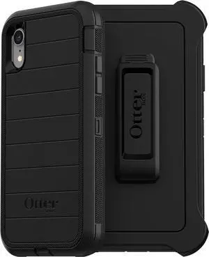 iPhone XR Defender Series Case - Black Rugged & Durable with Port Protection Includes Holster Clip Kickstand