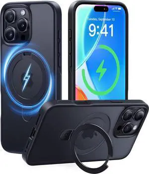 Ultra-Magnetic Stand for iPhone 16 Pro Max Case [Military Drop Protection] [Compatible with MagSafe] Shockproof Translucent Matte Slim Ring Holder Case for iPhone 16 ProMax 6.9 inch Black