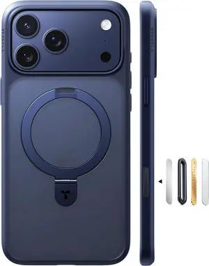 Strong Magnetic & Seamless Stand for iPhone 17 Pro Max Case Fit for MagSafe Military Grade Drop Protection Invisible Adjustable Kickstand Camera Control Button Translucent Matte Deep Blue