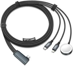 Multi Super Fast Charging Cable for Travel Essentials 3 in 1 USB C Cable for Watch Charger iPhone Charger Type C(60W)/Lightning(27W) for iWatch iPhone 17-8 Galaxy S25 AirPods MacBook iPad-4FT