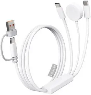 Multi Charging Cable 100W Dual USB C Charger Cable for Watch Charger 3 in 1 Fast Charging Cable iPhone 17/16/15 Pro iPad MacBook AirPods Nylon Braided Travel Cable
