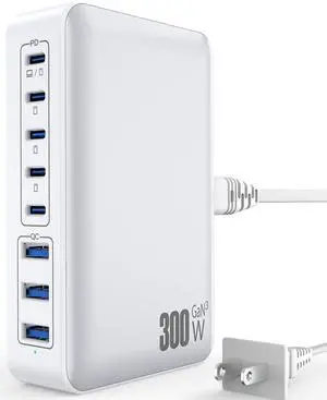 USB C Charger 300W USB C Charger Block 8-Ports GaN IV Fast Charging Station PD 100W Laptop Charging Hub Wall Adapter Compatible with MacBook/Air Steam Desk iPhone 16/15/14 Galaxy S24 etc