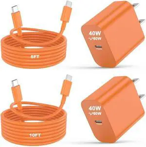 iPhone Charger Fast Charging 2 Pack for 40W Dynamic Power Adapter with 60W Max Long USB C Charging Cable Cord for iPhone 17 16 15 Pro Max/16 15 Pro/16 15 iPad Pro/Air MacBook (Orange)