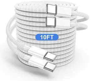 USB C to C Fast Charger Cable 10ft 60W Long Fast Charge Type C to C Charging Cord Wire for iPhone 17 Pro Max/17 Air/16 Pro Max/15 Plus iPad Pro 12.9/11 inch/Mini/Air 5/4th MacBook -White