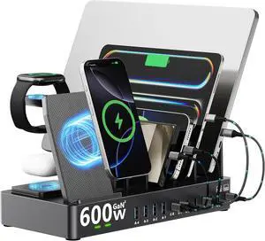 600w Charging Station for Multiple Devices 15 in 1 Wireless Charging Station for Dual 100w USB C Tablet Charging Station for MacBook iPhone iPad Tablet(Black)