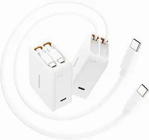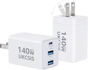 2Pack Mac Book Charger 140W USB C Fast Charger Foldable 3-Port Multi-Device Fast Power Adapter USB C Charger for MacBook pro/Air Galaxy iPad Pro and More(White)