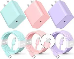 10Foot Fast iPhone Charging Cable 3-Pack Super Fast i Phone Charger USB C Charging Block Wall Charger PD Adapter with 10FT Type C to Lightning Cable Cord for iPhone 14/13/12/11ProMax/XS Max/XS/XR/8/SE
