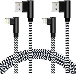 iPhone Charger 3Pack 6FT Lightning Cable Right Angle Lightning Charging Cord Compatible with iPhone 13/12/11/Pro/Xs Max/XS/XR/7/7Plus/X/8/8Plus/6S/6S Plus/SE (Black 6FT)