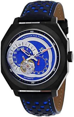 Christian Van Sant Mens Machina Stainless Steel Automatic Leather Strap, Blue, 22 Casual Watch (Model: CV0563)
