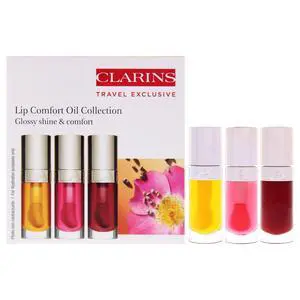Lip Comfort Oil Collection by Clarins for Women - 3 Pc 0.2oz Lip Oil - 01 Honey, 0.2oz Lip Oil - 03 Cherry, 0.2oz Lip Oil - 04 Pitaya